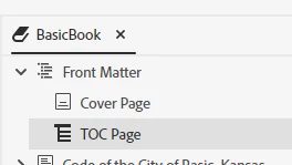 Without the TOC Page, the PDF will generate just fine. I'm not seeing any useful settings for this "TOC page" that might solve this generating error. Am I understanding what this is supposed to do... this should make the entire "BasicBook-TOC" appear in my PDF where the "TOC Page" is ?