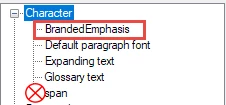 For Classic, create the style by right-clicking on the Character styles entry and selecting New, then typing a name for the style (e.g. BrandedEmphasis). Behind the scenes this creates a css style that looks like this: