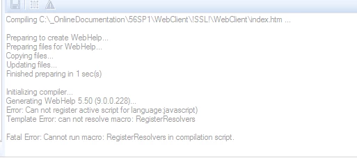 I have successfully created WebHelp in the past using my same projects. One troubled project was compiled successfully in October 2012.
