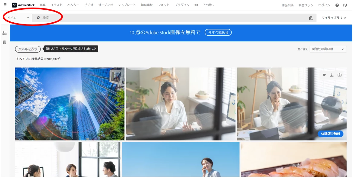 現在、Adobe Stockトップ画面でテキスト入力がうまくできないという事象が確認されています。