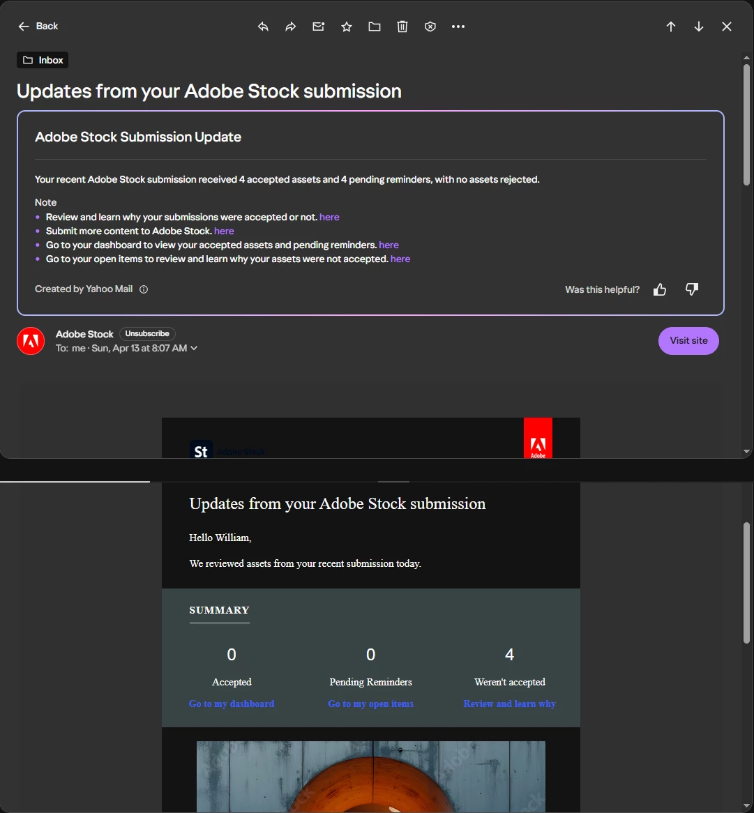 Accepted and rejected images on Adobe Stock Contributor are being misreported via email updates