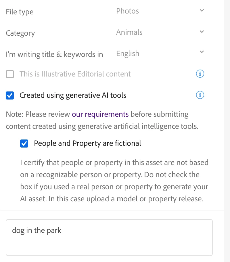 Hi, @Abambo...actually, I tried selecting Photo for a photorealistic AI image, in addition to the boxes noted in your upload. But when I attempt to upload it, I get the warning as shown here. Maybe it's just meant to remind the contributor that a property release MAY be required and the image will be accepted regardless. But the warning message is kind of off-putting, even though it has been stated elsewhere that photorealistic AI can be labeled as photos.