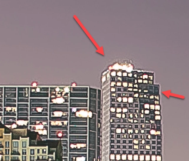 Noise and white balance, out of focus (lens border?), chromatic aberration, other artefacts...: