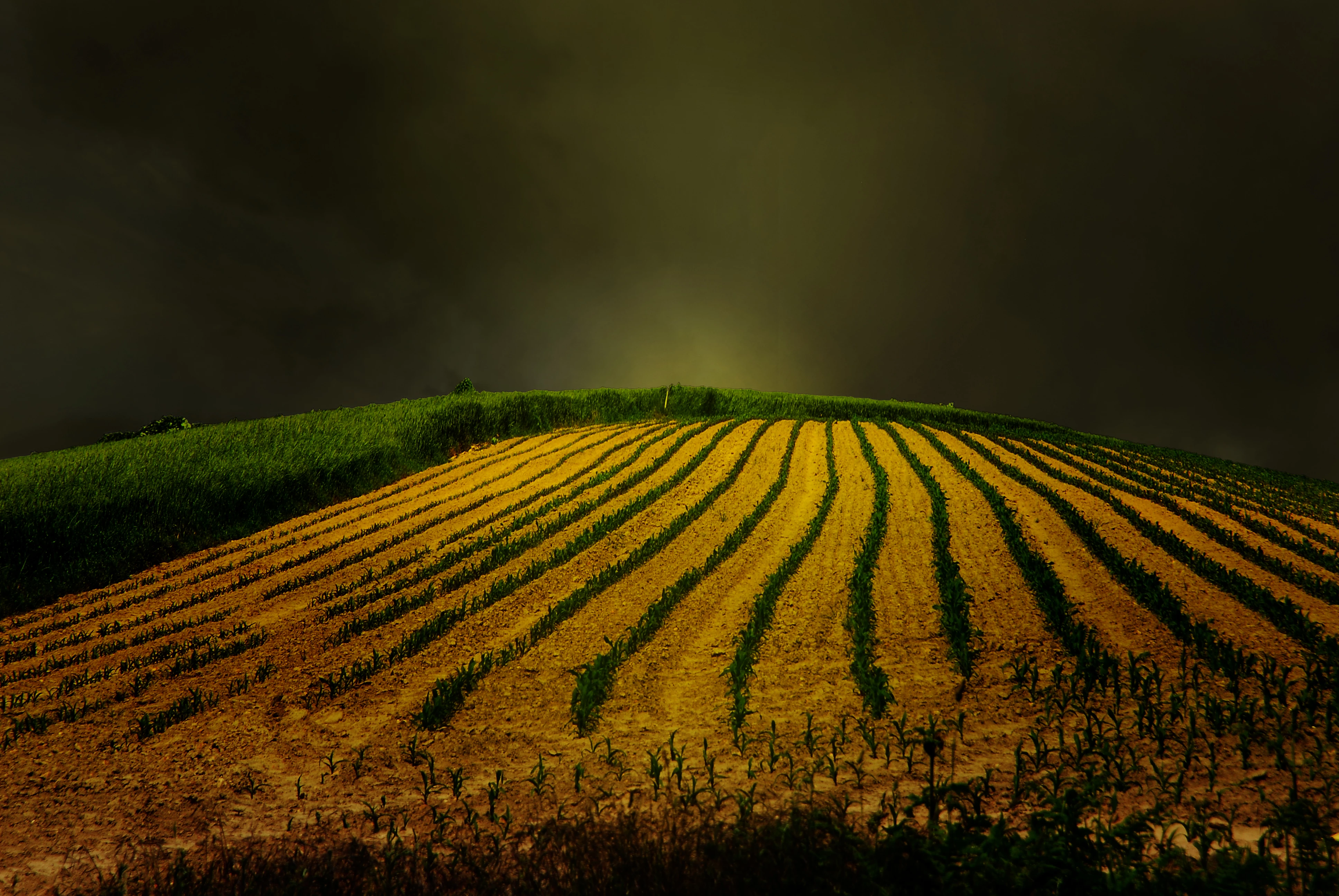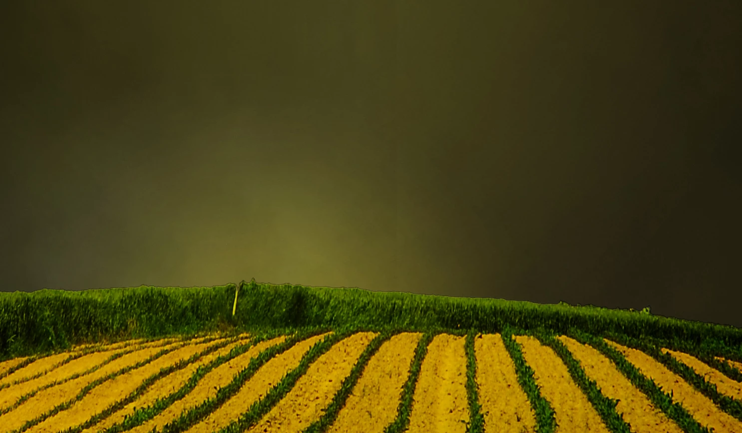 Here is a capture of your image at 100% magnification. There is a vertical line running through your sky. The sky itself is posterised - meaning the banding of colours in the sky. The transition from the field to the sky has a definite dark line (halo) which doesn't look natural. The field and plants are lacking any sharp detail and focus. Overall, the image is too dark and underexposed.