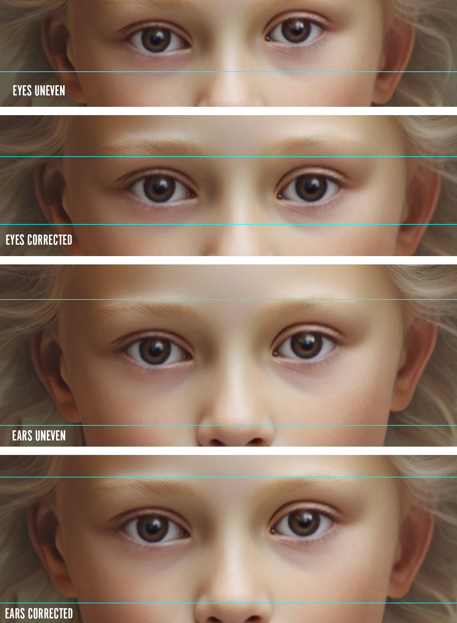I've mentioned a couple of times the importance of using facial restoration software to improve AI generated images of people. But I also want to clarify that is does not fix everything and a careful review of the results is still necessary. In the attached example, note that the eyes and ears of the facial restored image of the young girl remain as uneven as they were in the original AI generated image. I used two techniques (copying and pasting and Liqufy) to correct the issues. Hope this helps!