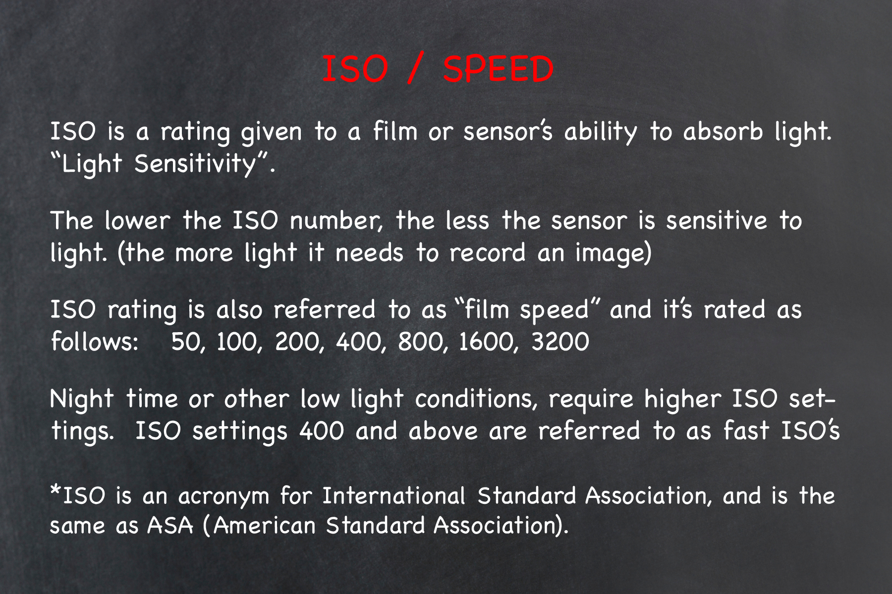 You can't sell it onnAdobe stock. Slide 27 cannot be opened on my iPad. Your ISO explanation in connection with a sensor is wrong. You do not change the sensitivity to light of a sensor. The sensor has always the same sensitivity. ISO is just relict from old film cameras, where it was indeed a physical property of the film. In a digital camera, it influences the amplification of the signal after hitting the sensor. The effect is similar, but it's not the same.