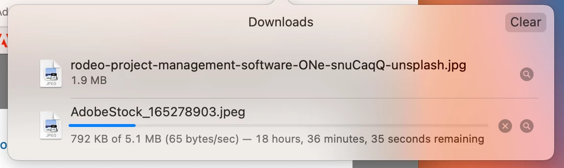 I'm trying to download a JPEG from adobe stock and it is taking an eternity.