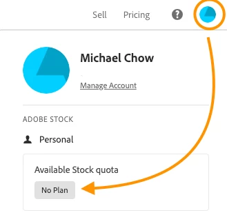 Click on your profile icon as circled, and it should say if there is a plan or no plan. In my case, I do not have the Adobe Stock.