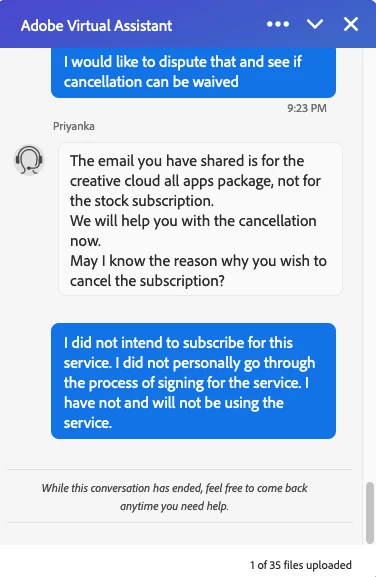 that they sent me a confirmation, refusing to acknowledge my problem or offer any options to help before ending the conversation with no notice. I tried twice, and both times I was routed to the same person before being cut off.