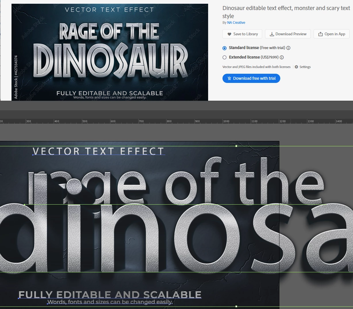 I downloaded a Jurassic Park vector text effect graphic on Adobe Stock. However, once loaded up, it stated that 4 fonts were missing rendering it useless?