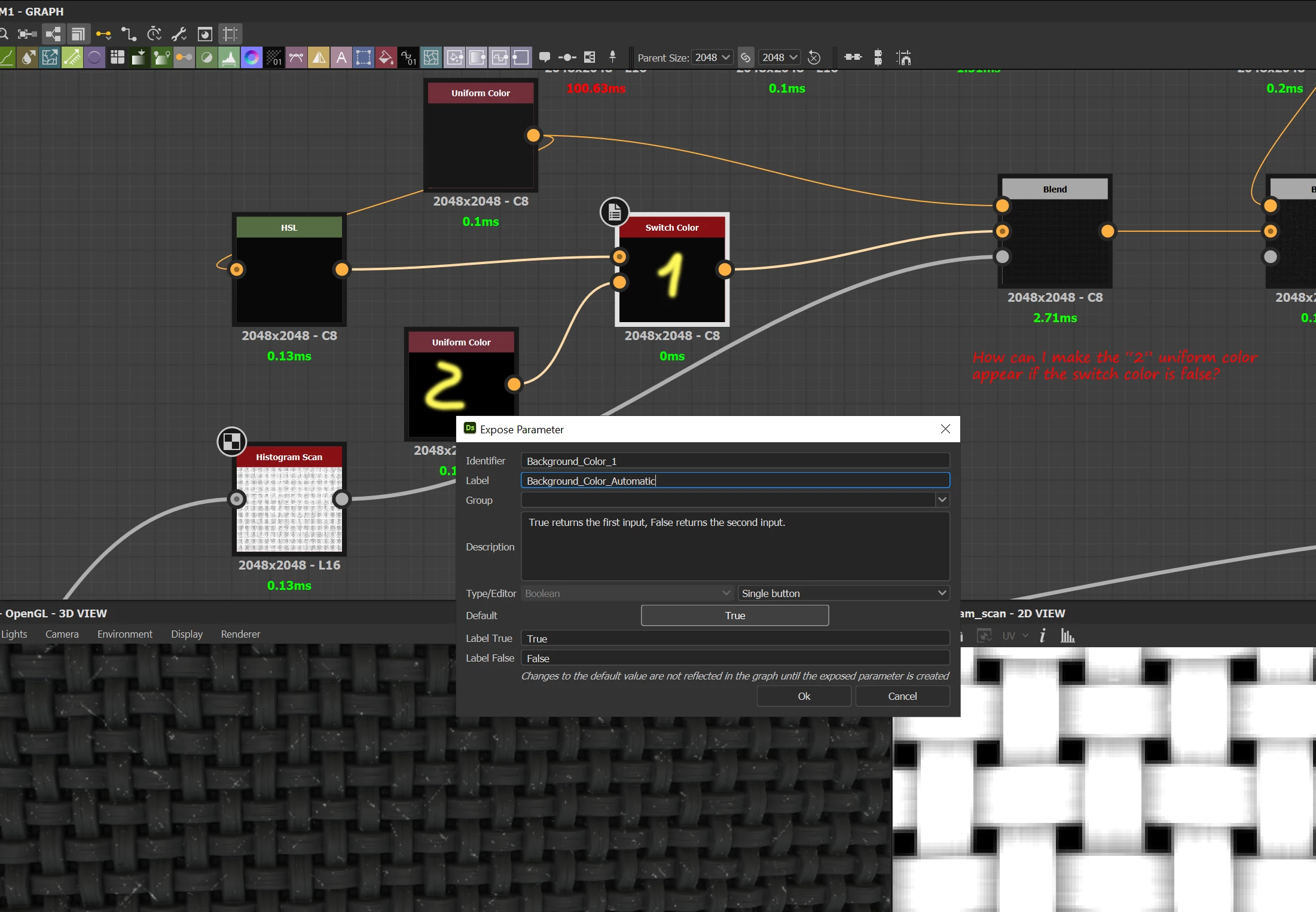 Need some help please, how can I expose (sbsar) "2" only if "1" is changed to false? Thanks