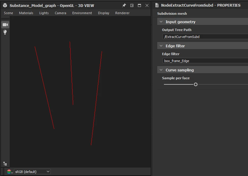 The same edges are correctly extracted using this selection set tag in Substance 3D Designer, with the Extract curves node.