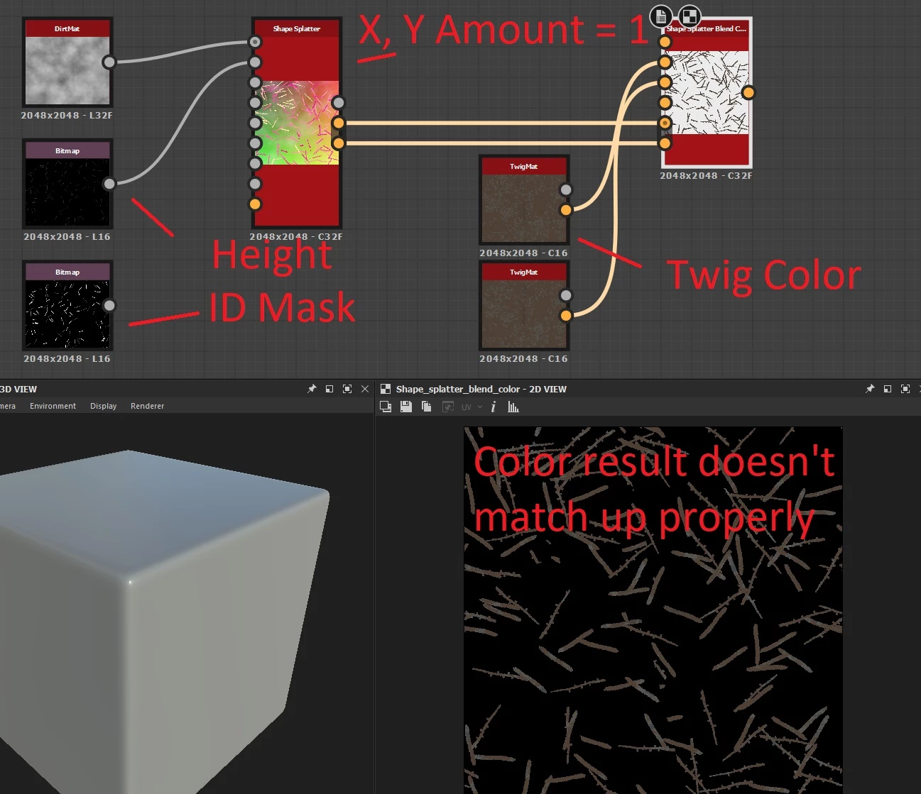 So I have a height bitmap that I am using for my twigs, and I want to color it the way Shape Splatter would going into Shape Splatter Blend Color.