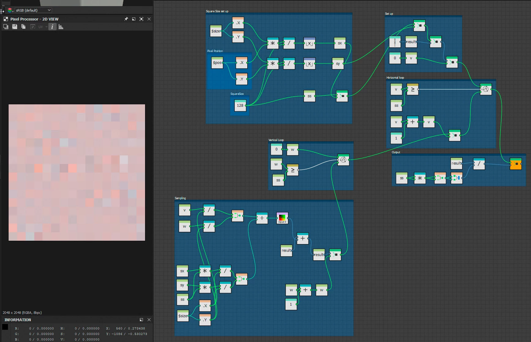 (Why do I want the first 32 pixels? For no reason, I'm taking baby steps right now. Once I connect enough dots then I'll node my way to get a specific result I want to achieve. Something that can work with general input. I'll share that node graph and tutorial with you all!)