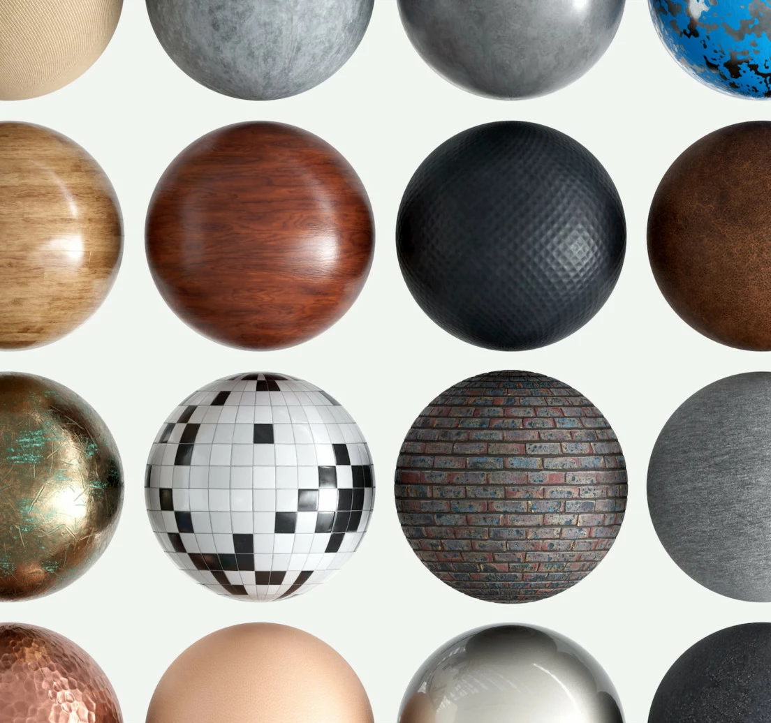 To show again what I would like to render, as an example, are just such balls with different materials, and without any background: