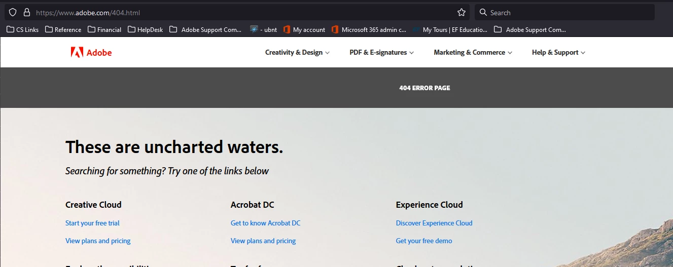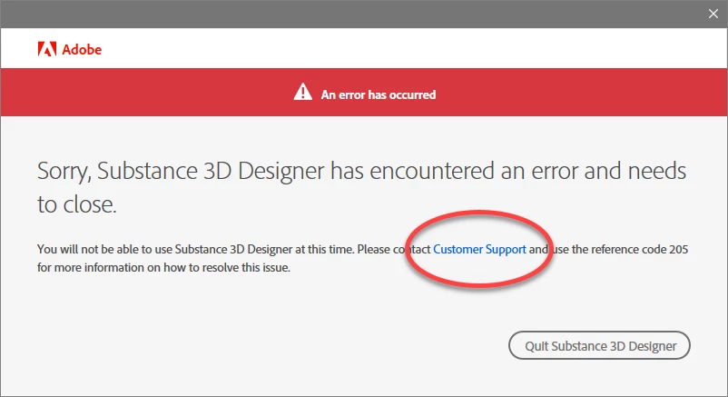 But, clicking the link in the dialog box ("Contact Customer Support") takes me to a 404 page on adobe.com.
