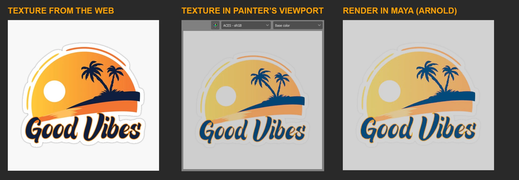 Despite all this, the color mismatch from the original web image to Substance Painter (and subsequently to Maya) persists. I'm trying to understand if this is a Substance Painter issue or something inherent in the ACES workflow that I might be missing.