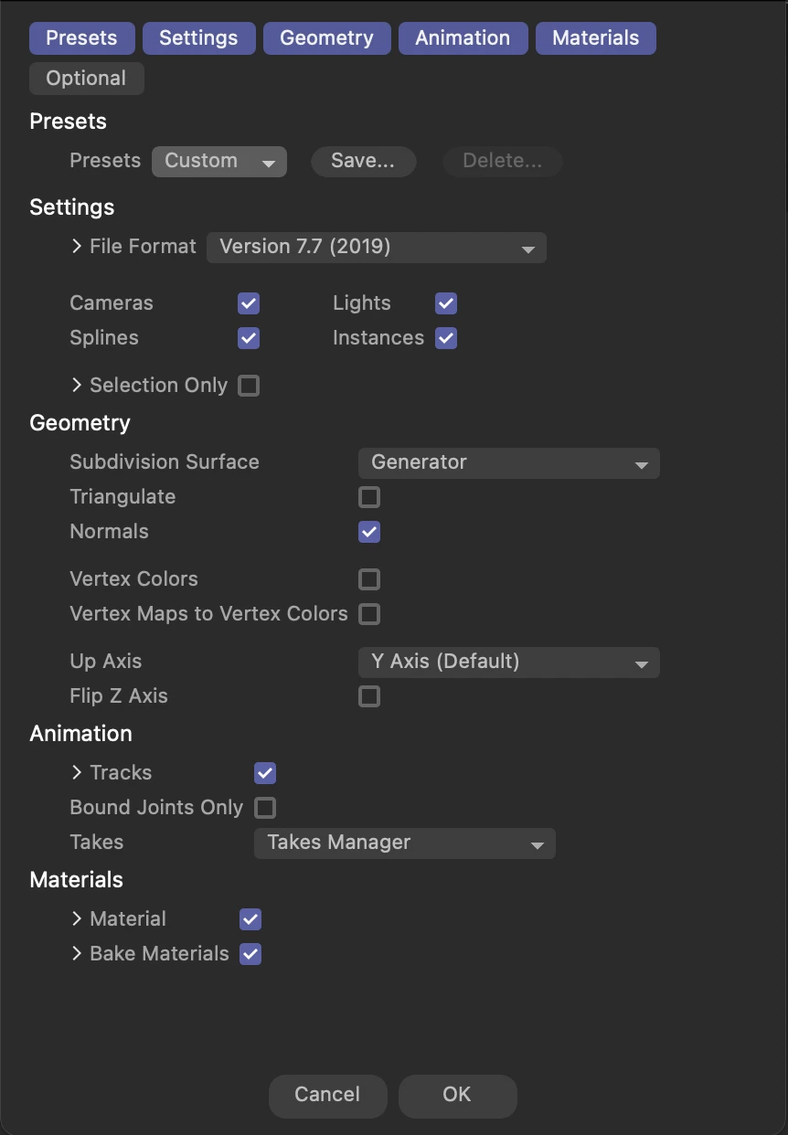 Cinema 4D FBX Exporting