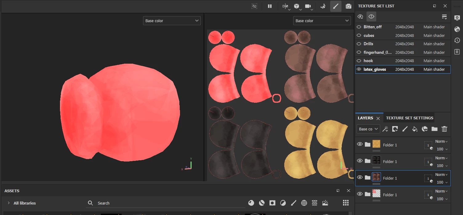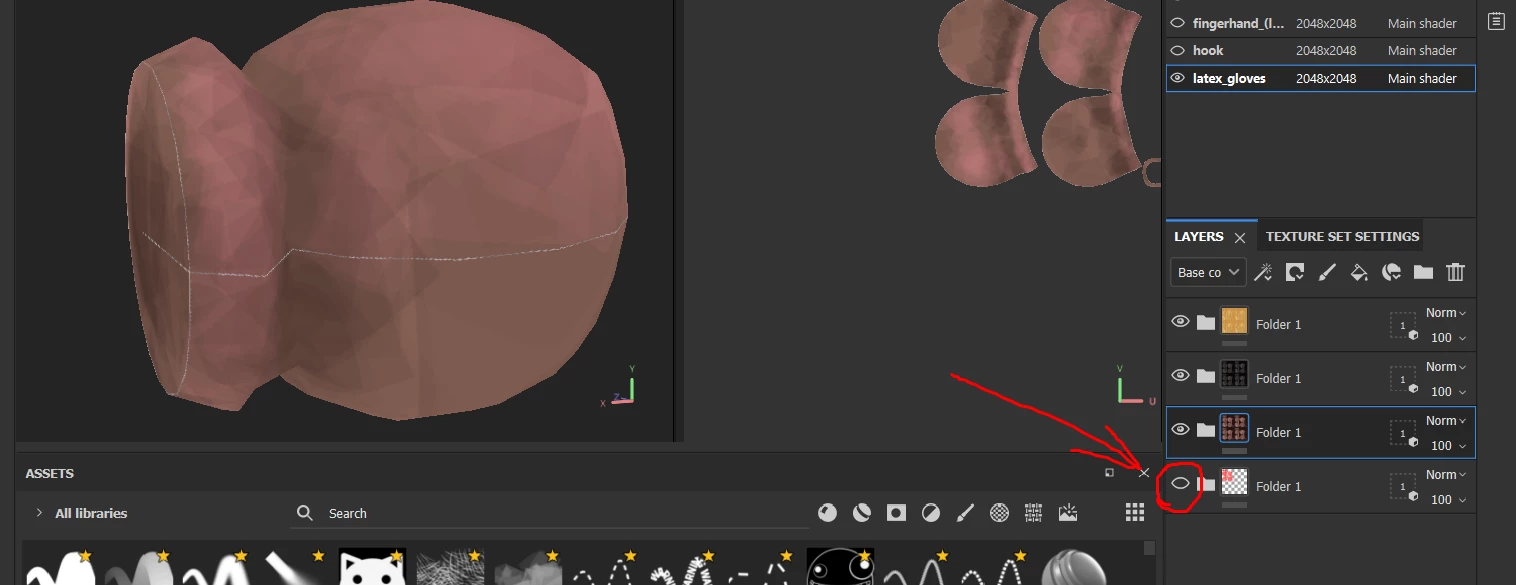 I guess, it somehow related to the first layer folder, which texture is red. And I use different models in same position, but with same material.