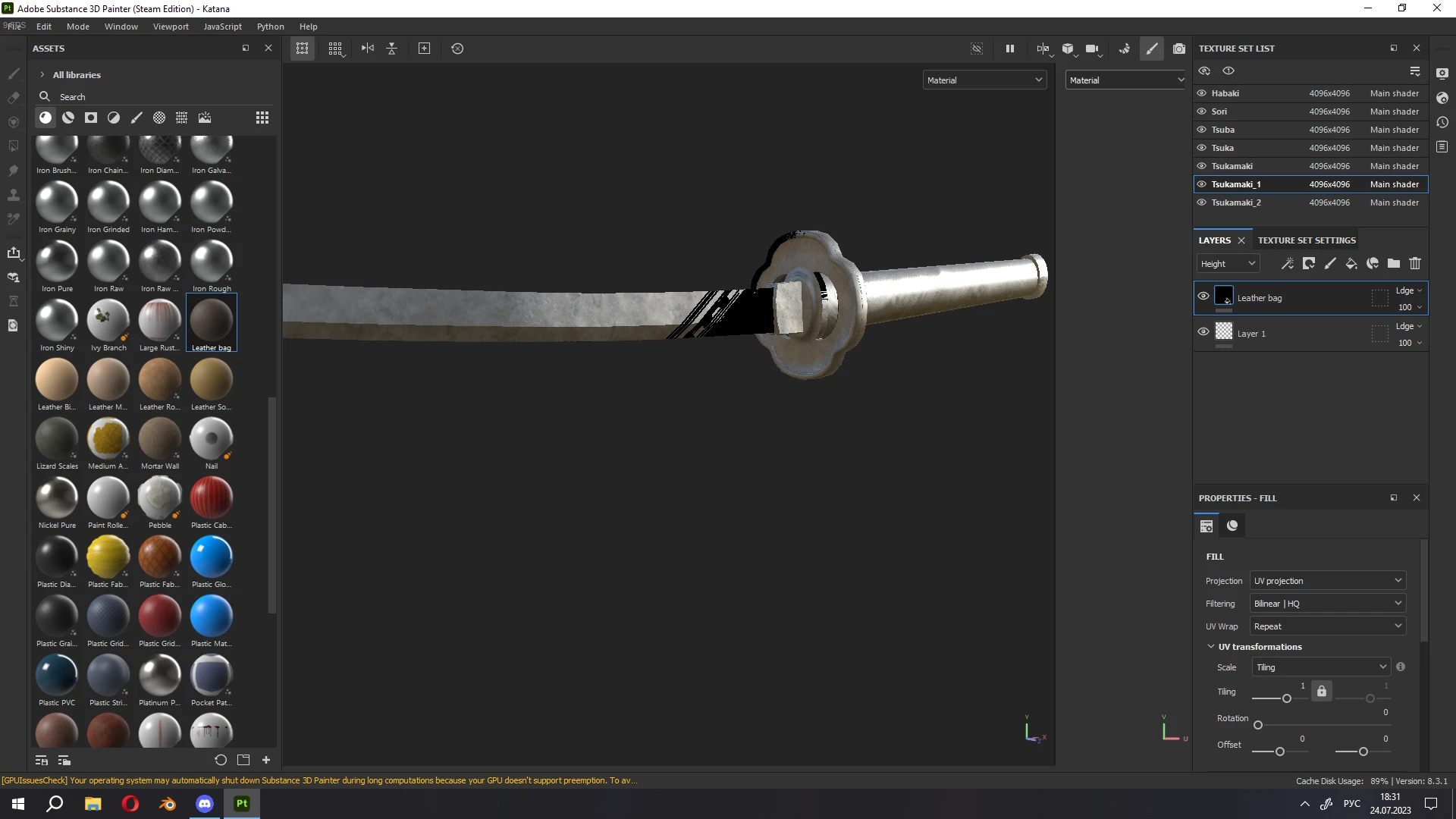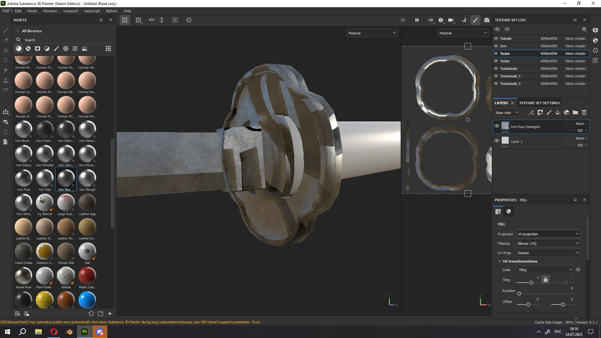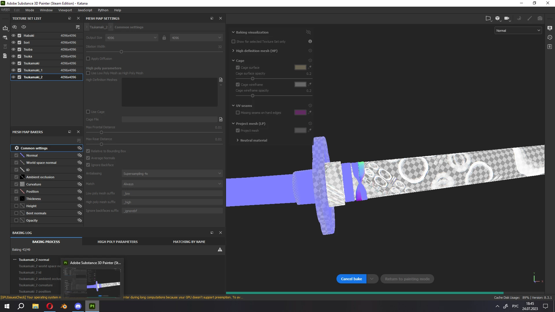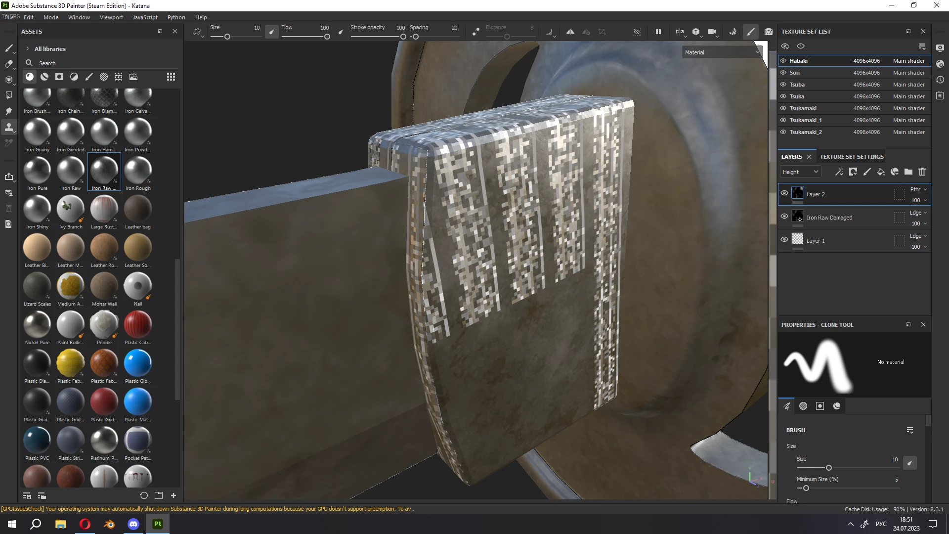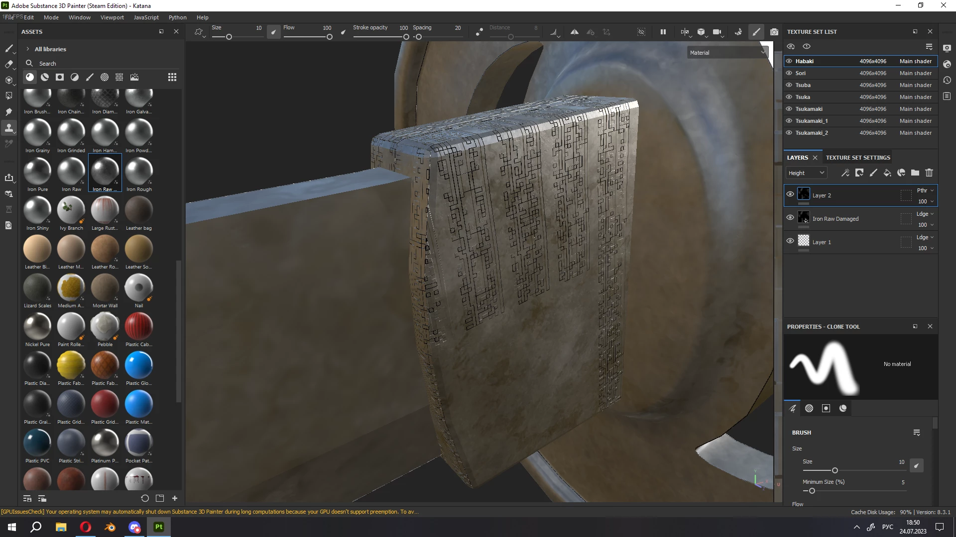 I want to ask you for help. Not so long ago I started using Substance Painter, so I don't understand a lot. At first everything went well, I finished two projects, but the last one caused a lot of problems. Starting with crashes, which is not as problematic as the constant appearance of artifacts.