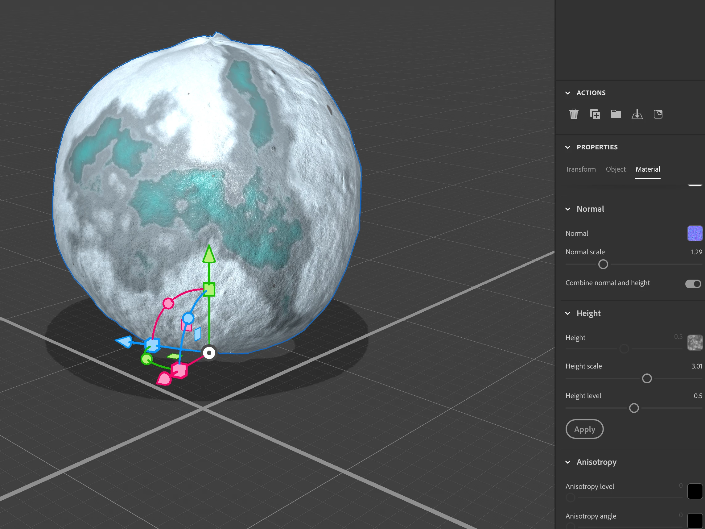 In the height settings you can now adjust the height scale and height level to control the displaced material height effect.