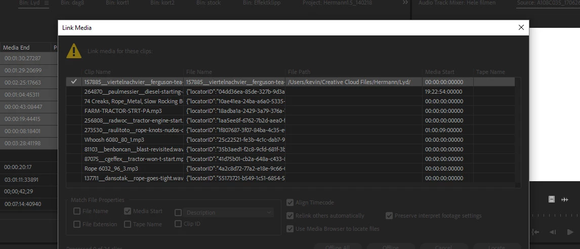 So I would have to link one by one to get it in. The only solution I have come up with is to re-attach the proxies. That works but takes a lot of time, and we will not be able to switch back to the raw before grading.