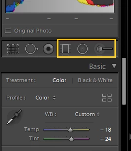 - Select one of the following tools: Graduated Filter, Radial Filter, or Adjustment Brush.