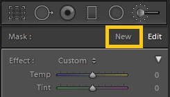 - In the Adjustment Brush panel, click New to create another mask.