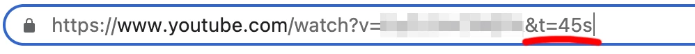 ※URLに&t=45と入れてEnterを押すと45秒から再生が始まり、URLには秒を表すsが自動でつきます。&t=45sと、s込みで入力しても大丈夫です。