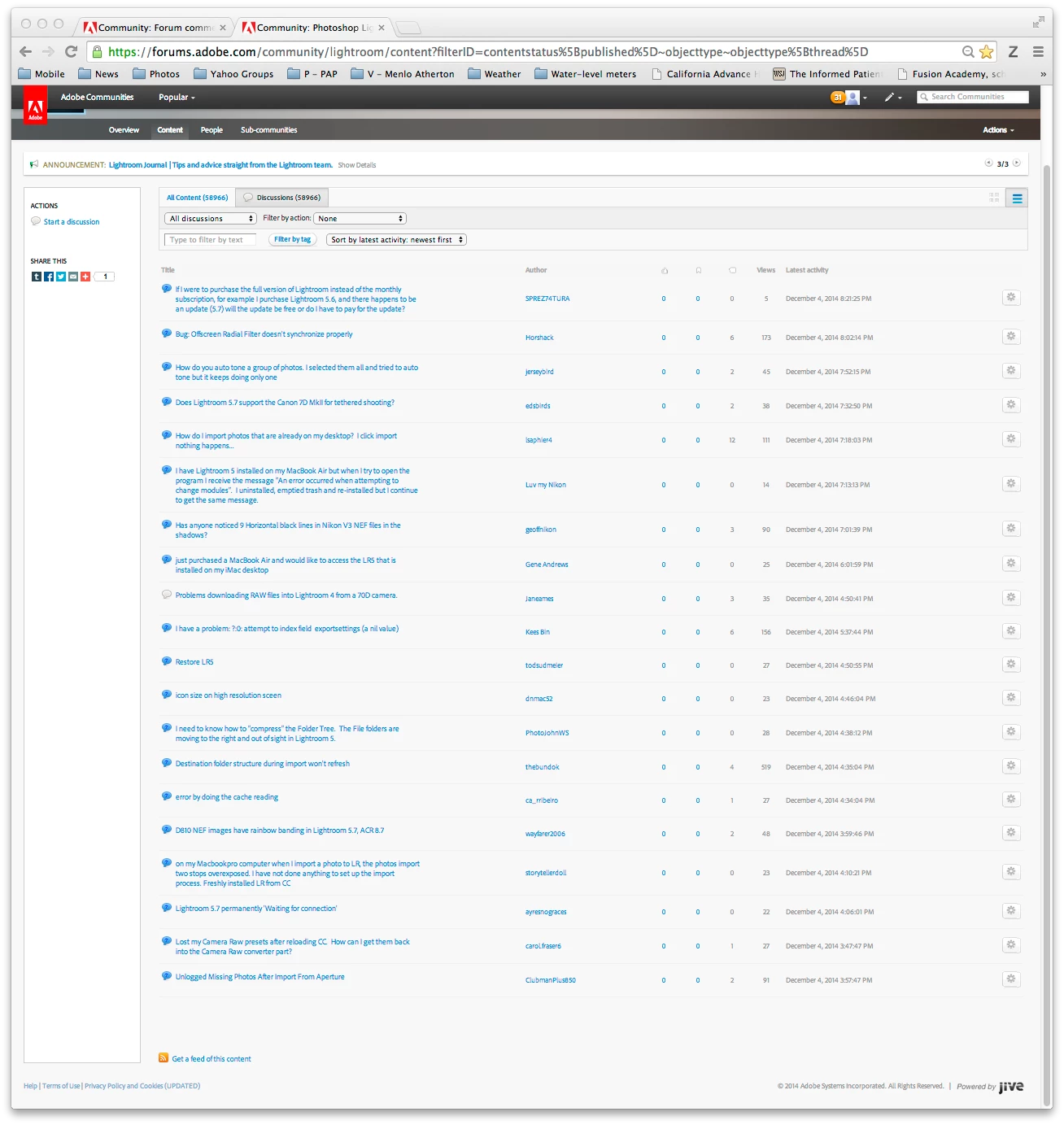The next/previous page buttons and the page numbers are missing in the Lightroom forum. I tried both Chrome and Safari (OS X 10.9.5), restarting both browsers: