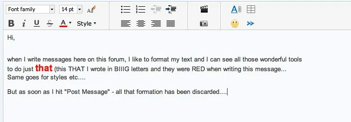 when I write messages here on this forum, I like to format my text and I can see all those wonderful tools