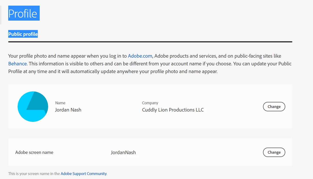 Update Display Name to Match Public profile in Adobe Settings