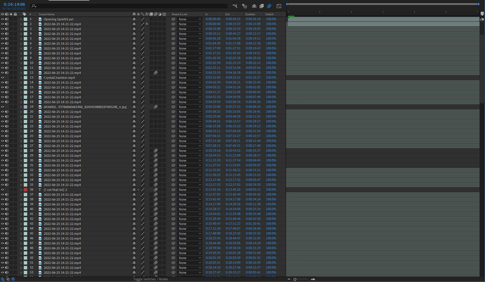 You can see from the above screenshot the 'empty' layers, and the top two being the only ones I can manipulate. There are at least another 50 or so layers below the bottom one, that like I mentioned, are essentially cut off from the rest of the timeline.