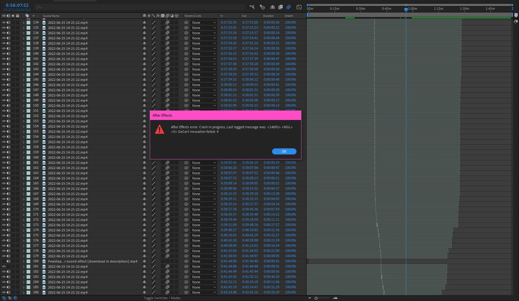 Now, after looking about to try and find some solutions to this issue; since apparently the '17::19' is so rare, I only found a couple of posts putting forward any solutions- one of which was that it was caused by a resolution/framerate change to a layer with an active mask. It sounded dumb enough that I figured that it would have actually caused it, so I went to check, however upon checking to see if any of my layers had masks...