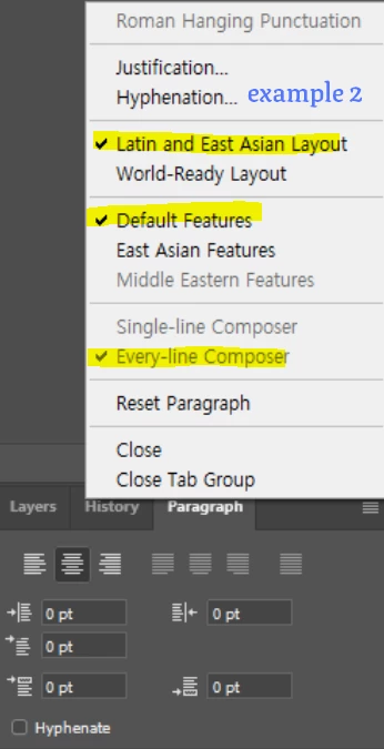 Hi, I'm trying to figure out why the text layers from example 1 and 2 have different spacing when they have the same settings. Example 2 is the correct look of the text.