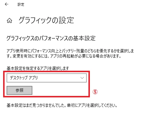⑤ "デスクトップアプリ" に設定されていることを確認し、[参照] をクリック