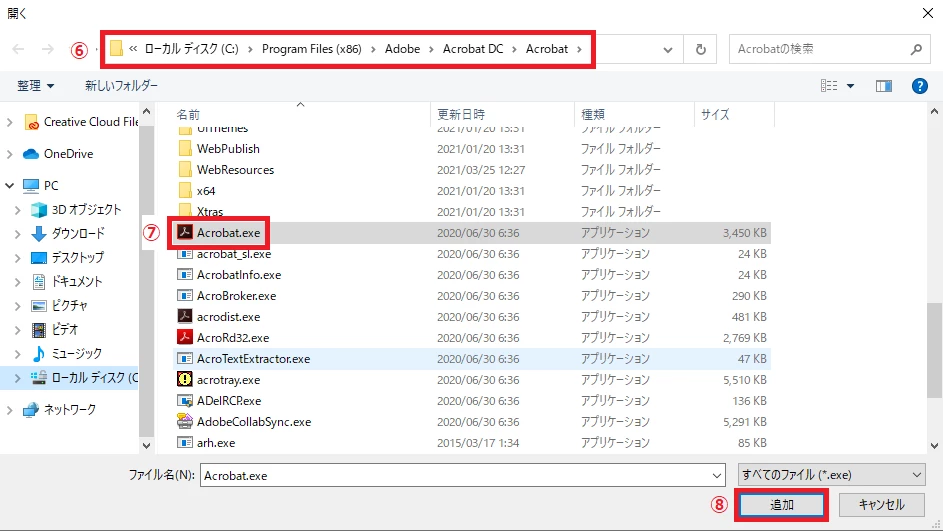 [64bit OS に Acrobat 32bit版をインストールしている場合]