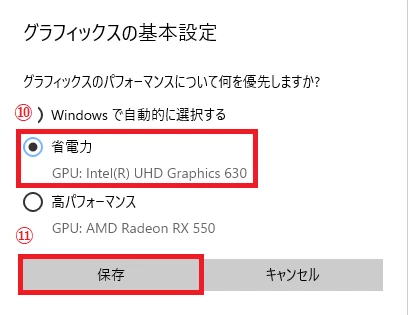 ⑫ Acrobat の項目に “省電力” と記載されていることを確認できましたら完了です。