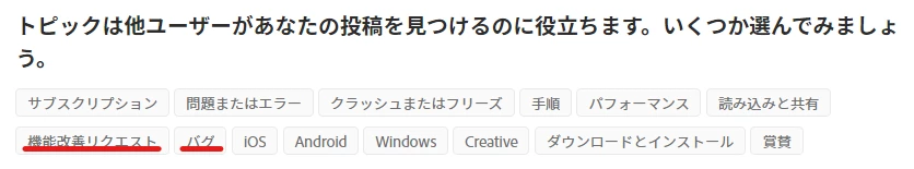 ※キーワードから「機能リクエスト」「バグ」をお選びの上投稿してください。
