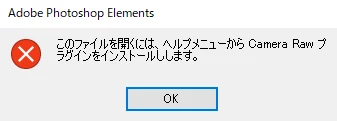 ※RAW画像をPhotoshop Elements インストール後に開こうとした場合上記エラーが表示されます。