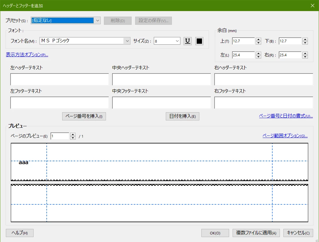 また、そのヘッダフッタ設定を、毎回いちいち指定するのは面倒なので、