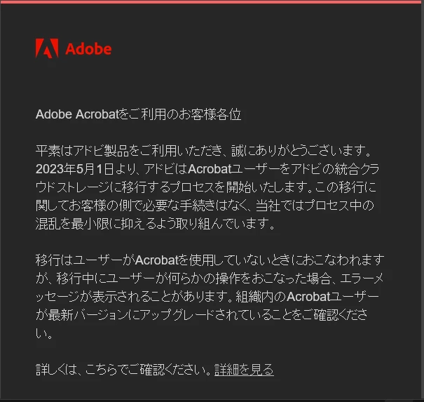 メーラーをチェックしたらこんなタイトルのメールがAdobeから来ていました。