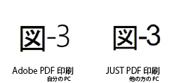自分でも同じようにJUST PDFで印刷しても、AdobePDFで印刷したように図表番号の数字のフォントだけ細くなってしまい再現できない状況です。