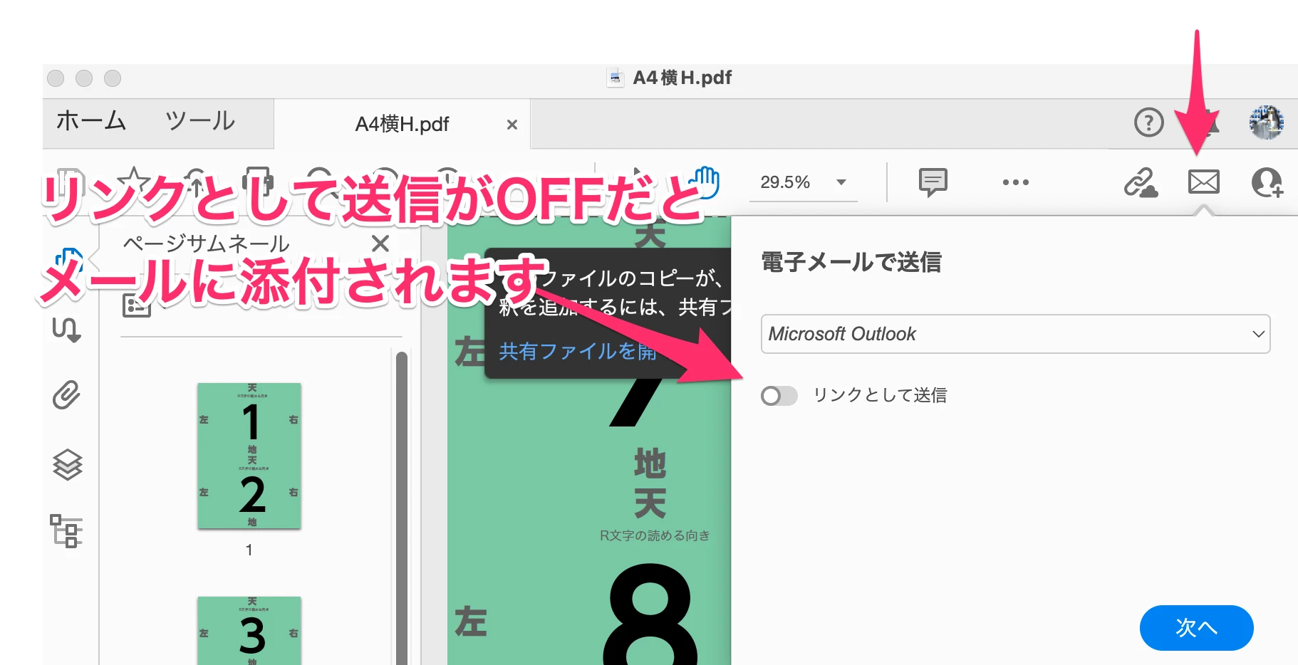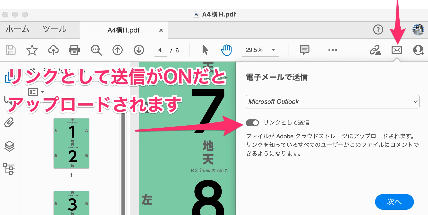 クラウドにアップロードしてリンクをメールするか?