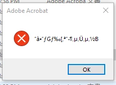 PDFファイルをAdobe Acrobatで開こうとすると時々このような文字化けしたエラーメッセージが出てきます。
