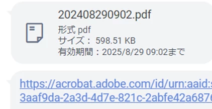 メールで送ってもらったPDFが開くことはできるけれど、ダウンロードやデスクトップアプリで開くことができません。できるPDFとできないPDFを比較すると、できる方はPDFと表示されており、できない方はURLで表示されています。