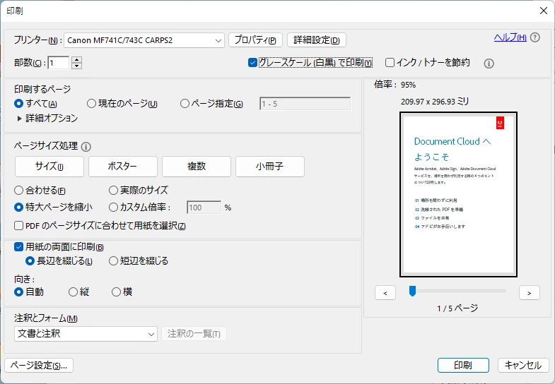 一度 Acrobat を終了すると、その設定もクリアされてしまい、印刷時に再設定しなければならずとても不便です。