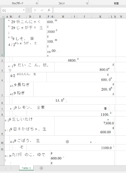 問題です。コレをExcel作成納品書に転記可能な状態にしてみましょう