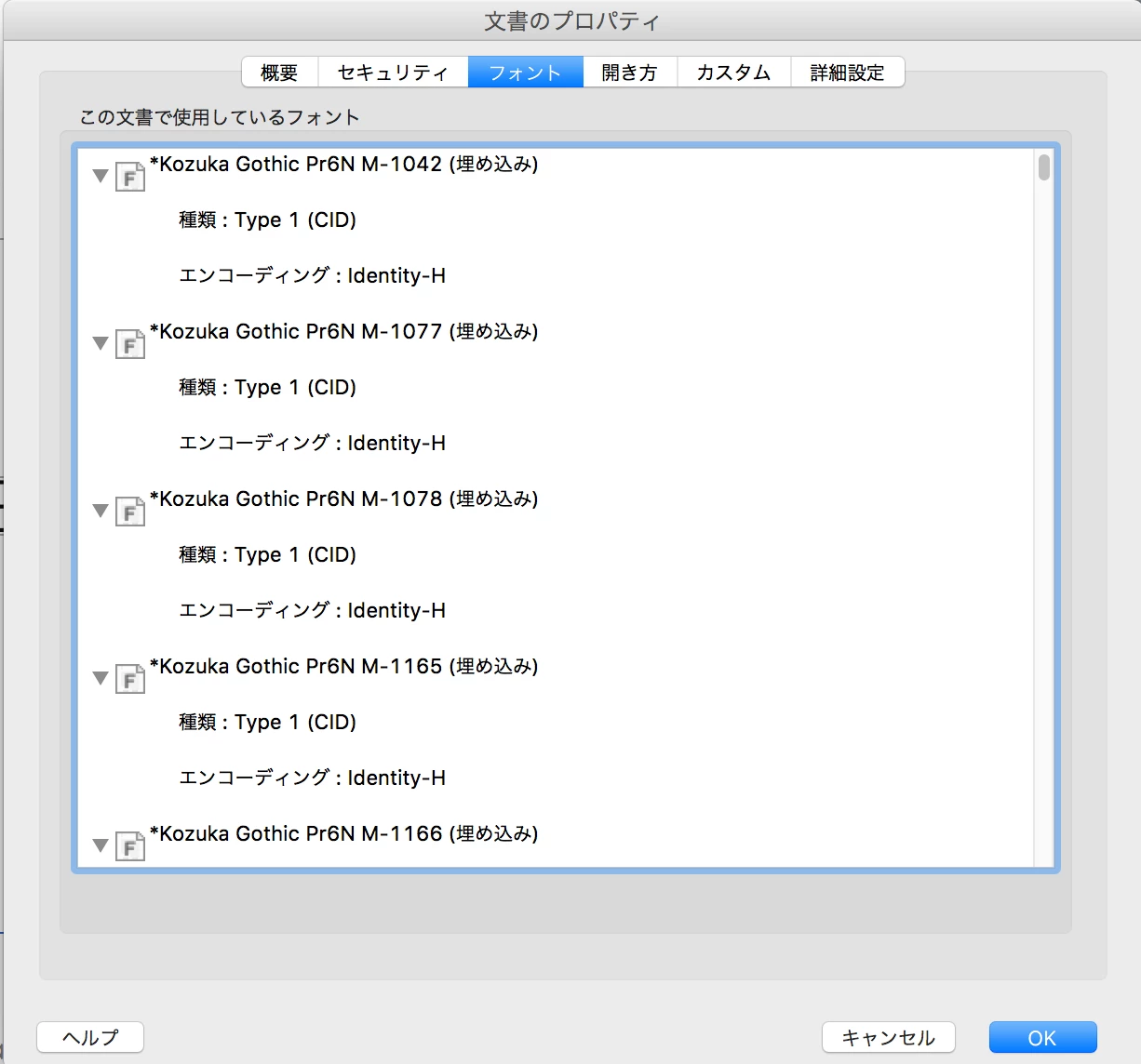 文章プロパティで調べてみると「埋め込み」されているのがわかりますが、インストール済みのフォントです。