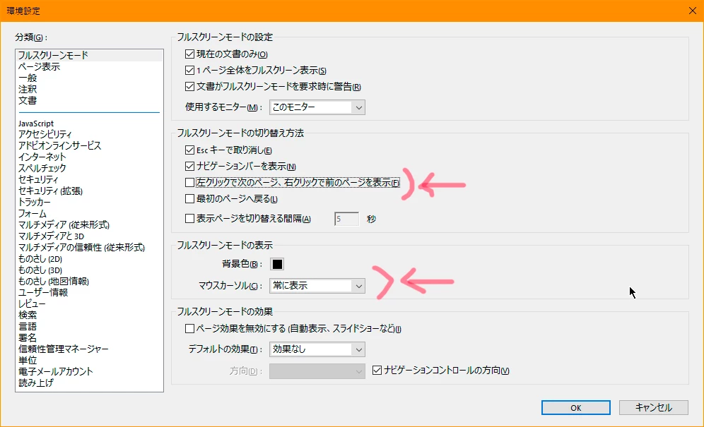 Adobe Acrobat ReaderにてPDFをフルスクリーンモードで表示するとき、